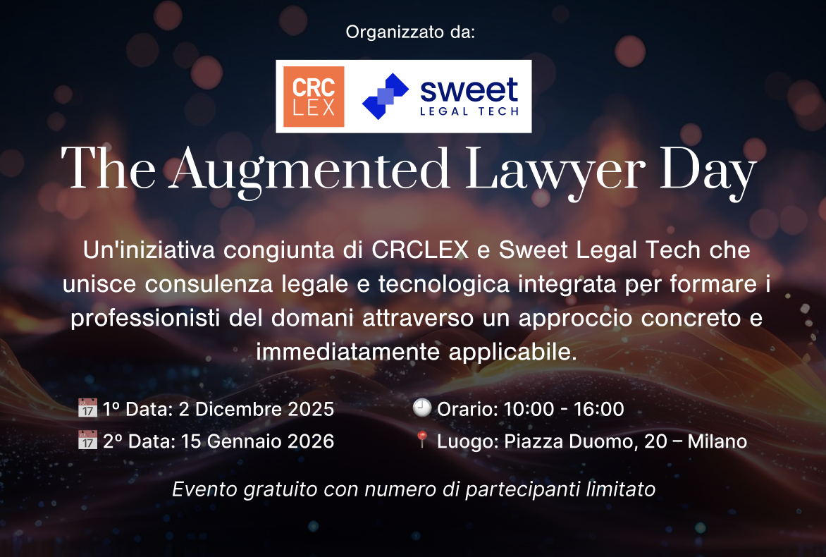 Un'iniziativa congiunta di CRCLEX e Sweet Legal Tech che unisce consulenza legale e tecnologica integrata per formare i professionisti del domani attraverso un approccio concreto e immediatamente applicabile.